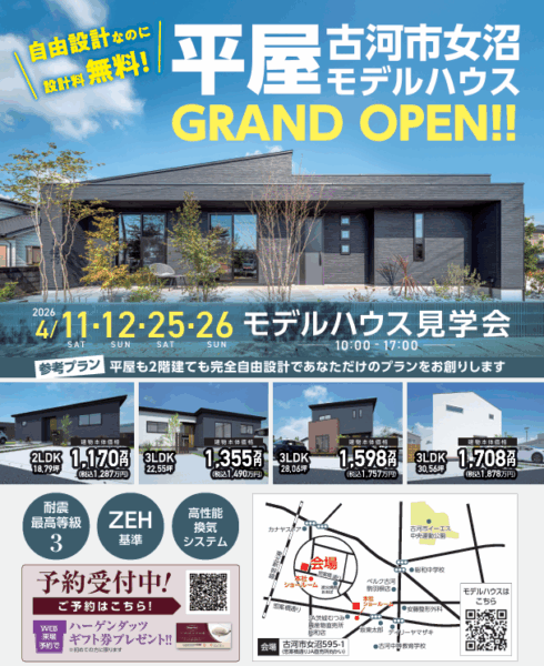3/8(土)9(日)22(土)23(日)平屋の間取り相談会開催